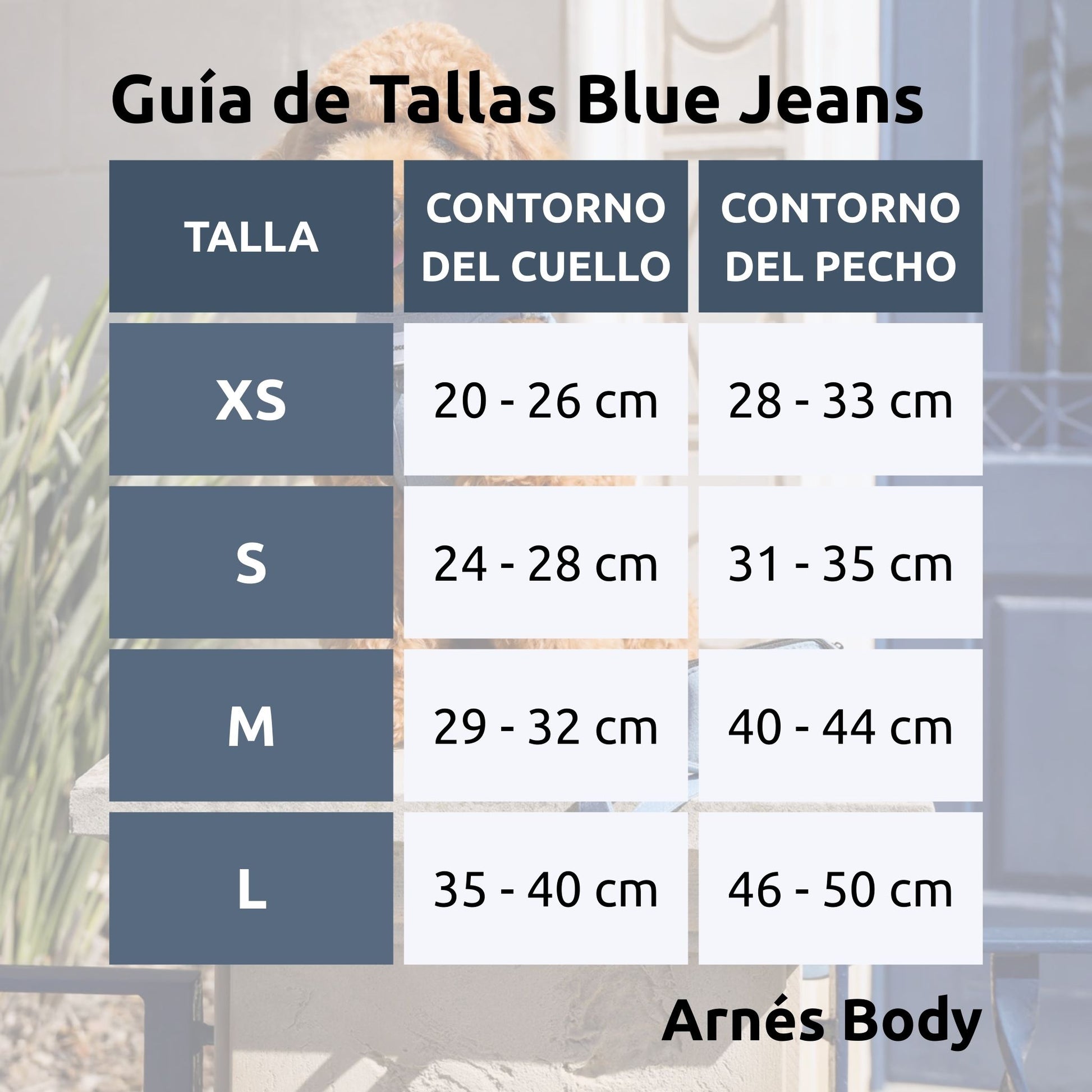 Información y Guía de Tallas Arnés Body Blue Jeans