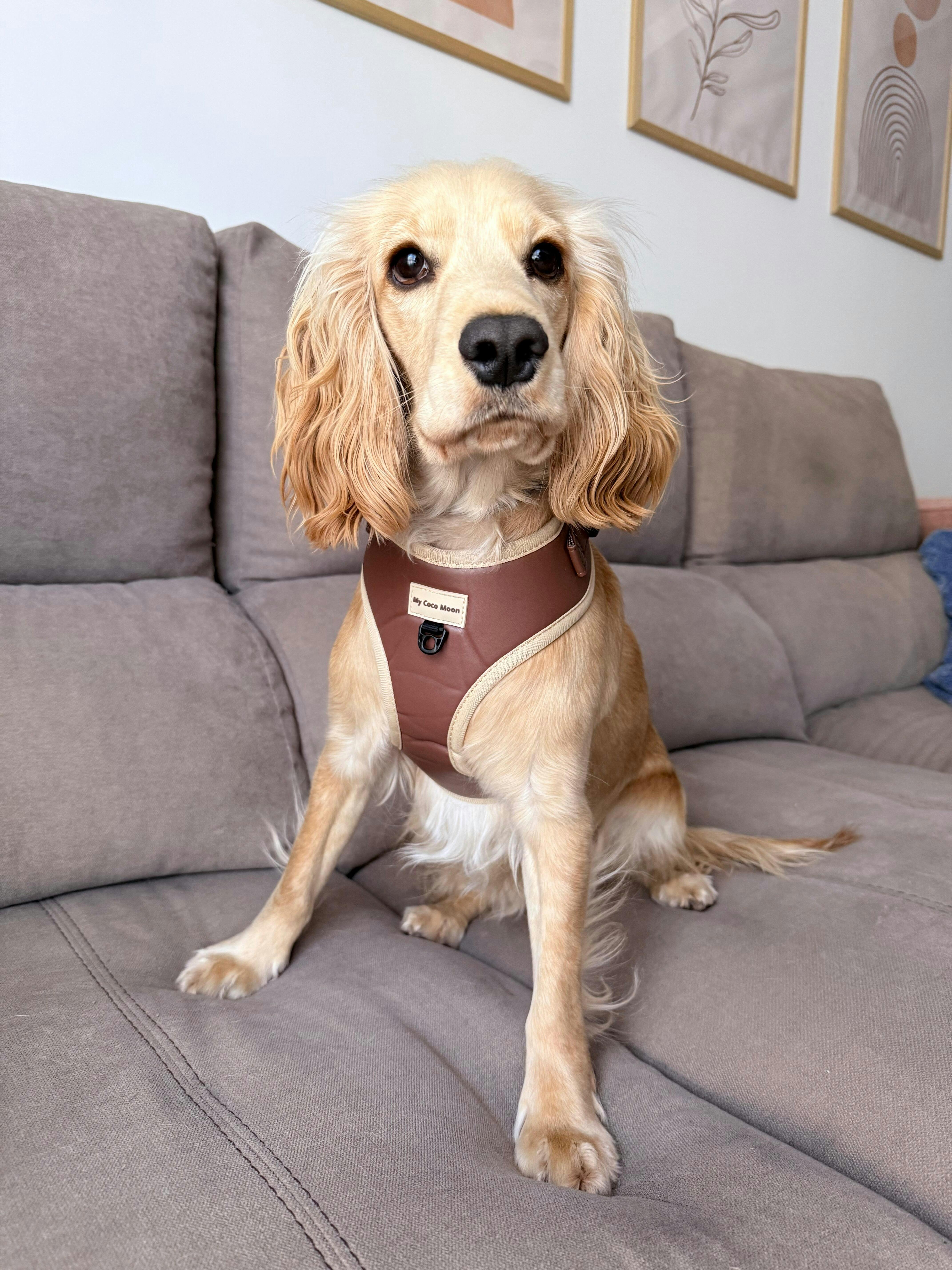 Un arnés especial, con encanto y diseño único. Super cómodo, calentito y super sencillo y rápido de colocar. Mi perrito Lotus está encantado y va a la moda. El color un acierto total, combinable para cualquier estación del año.